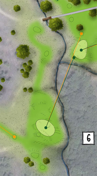 By far the hardest part about building this hole was having the courage to just leave it alone. We debated this a lot as the original plan called for a couple of bunkers to be added and shaped. But as we cleared the few trees and light brush in the area it became even more obvious that very little work was required for this to be a fine golf hole. The hole has a creek hazard running up the entire left side and behind the left portion of the green. Since the lay of the land is sloping right to left, the creek is very much in play and additional hazards were not needed. The green slopes hard to the left and the back half falls away to the creek behind.